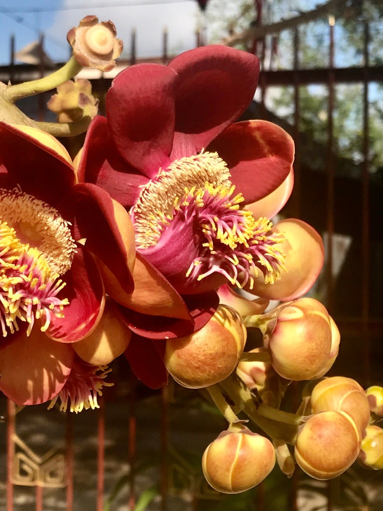 The acrid smell of burning incense drew Kurt, Thi and I into the village pagoda early on the eve of the Tet new year, which in 2020 fell on January 25. Within the shrine, we were captured by the seductive scent of two Đầu lân (“cannonball”) trees, their riotous, crimson-and-yellow blossoms dangling between the beige pods that give the plant its English name.