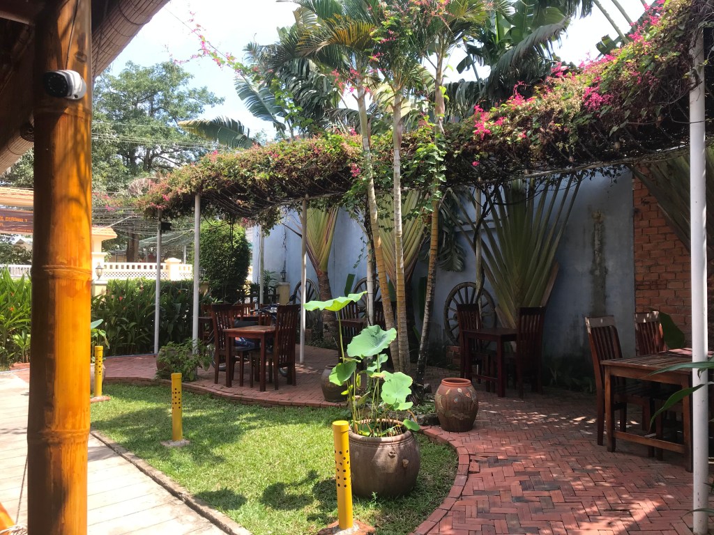 The Yellow House Restaurant, serving both Western and Vietnamese food (with Linh’s seafood specialties), is built like a beach cabana, framed in bamboo with a thatched roof. Phong Lan and I enjoyed taking our morning coffee in the adjacent garden courtyard before heading out for a day of exploring or relaxing on the beach. When we did depart to discover more of Phu Quoc’s island-wide plethora of pleasures, Vu’s in-house travel agency arranged for our tickets when necessary (as for the Hon Thom Nature Park cable car) and provided us with a motorbike for backroads excursions.