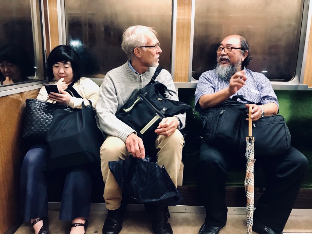 As it so happens, my brother lives only 36 miles (58 km) from Kyoto. Fred is a longtime resident of Japan, a linguistics professor at Kansai University. I often refer to him as “a tall blond Japanese guy,” even though his hair has now turned white, like mine. He and his wife, Kiyoko, live in suburban Osaka, in the town of Takarazuka; their two married sons and a grandson in Tokyo.