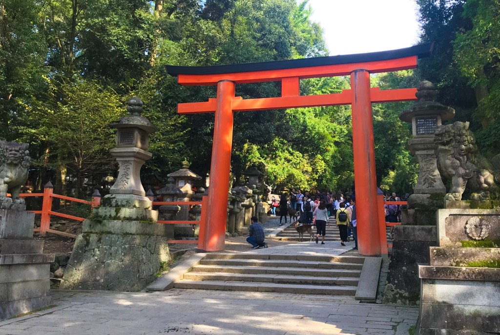 Built in 768, the shrine is famous for its long approach promenade: More than 3,000 stone lanterns line the way, and sika deer are with you nearly every step of the way. The interior of the building is remarkable for its bronze lanterns. The torii (gateway arch) at the approach to the shrine is one of the oldest in Shintoism.