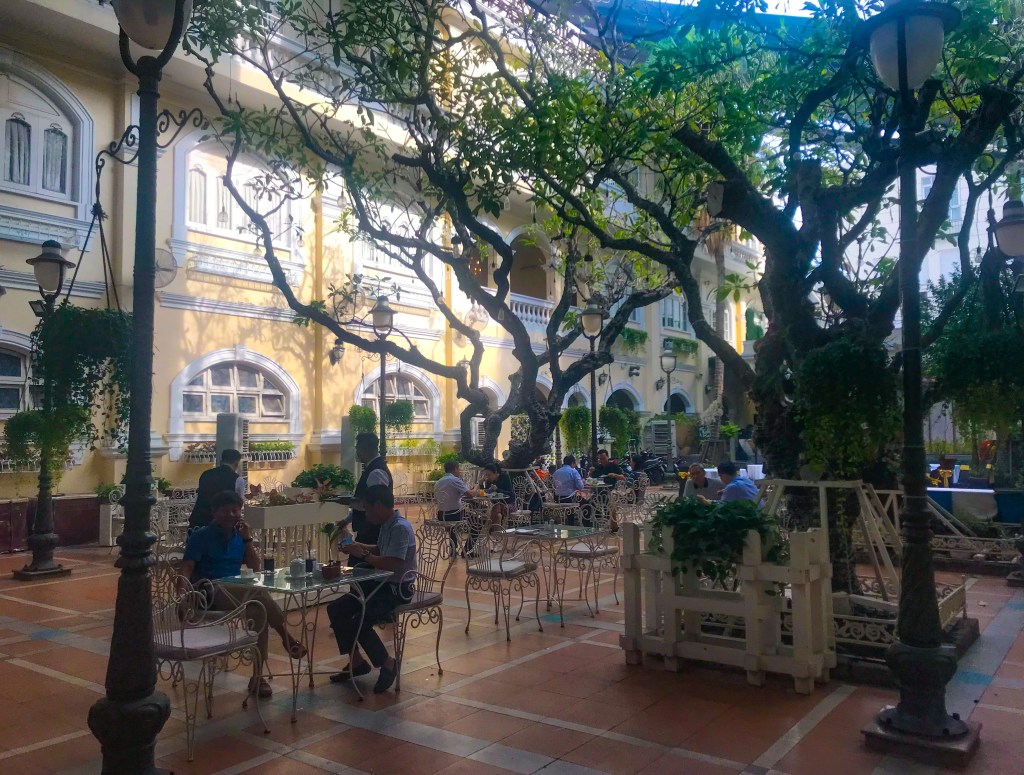 Initially built to accommodate French cruise-ship passengers, the Continental didn’t undergo a major refurbishment until 1986, under the direction of the state-owned Saigontourist Holding Company group. Today the original tile roof, over 140 years old, still slants gently toward the Opera House, and the frangipani trees planted in 1880 continue to offer color and shade in the open-air inner courtyard known as the Patio, where a breakfast buffet is served daily. If the polished rosewood furnishings in my guest room were not part of the hotel in its early years, they should have been.
