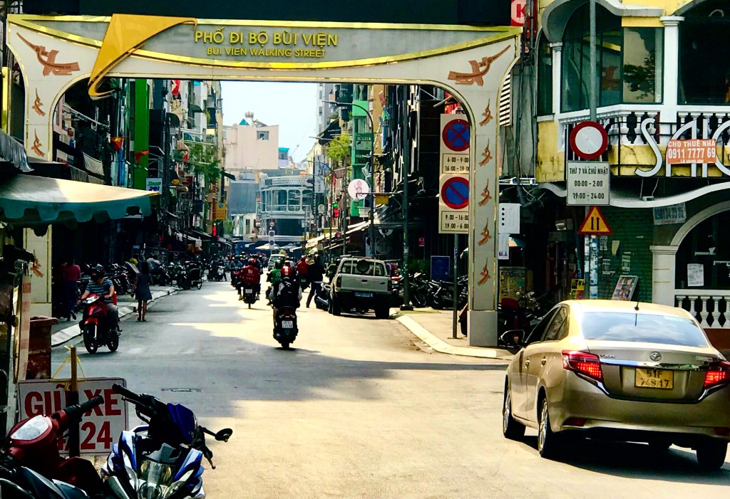 Love it or hate it, the Bui Vien “pedestrian street” is the heart of Saigon’s “Backpacker District” and a wild nightlife strip after dark. (JGA photo)