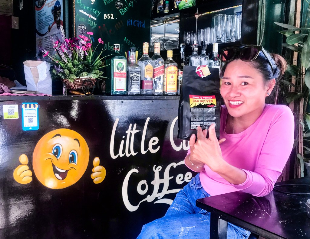 At the corner of Đỗ Quang Đẩu, Little Cu’mGar Coffee reminded me of my Vietnamese home province. I paused for a cup of rich 100% robusta and struck up a conversation with Lan, the owner of Caffe Cao Nguyên. As I recently wrote about DakLak coffee, I was impressed by the photos she shared of her traditional roasting process — directly upon hot coals. No wonder it is so delicious.