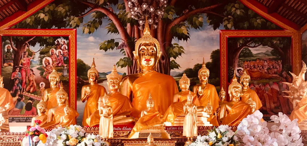 Inside and outside buildings, on sidewalks and temple grounds, these markets are as well known for their local arts and handicrafts as they are for their savory street foods. At a stage constructed in the middle of one open square, I listened to painful renditions of American country-and-western classics by young Thai bands … even as I smiled to see how much they pleased onlookers.